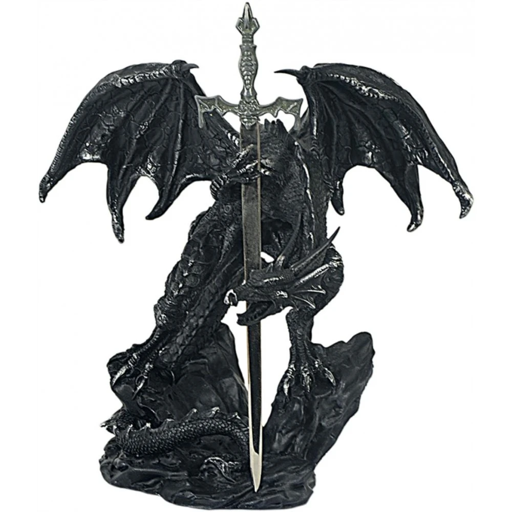 Schwarzer Drache mit Schert als Brieföffner