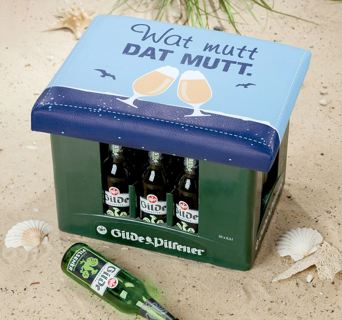 Gilde 42980 Bierkasten Sitzkissen „Wat Mutt“ 44x34cm Sitzpolster Blau