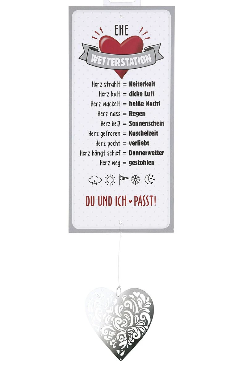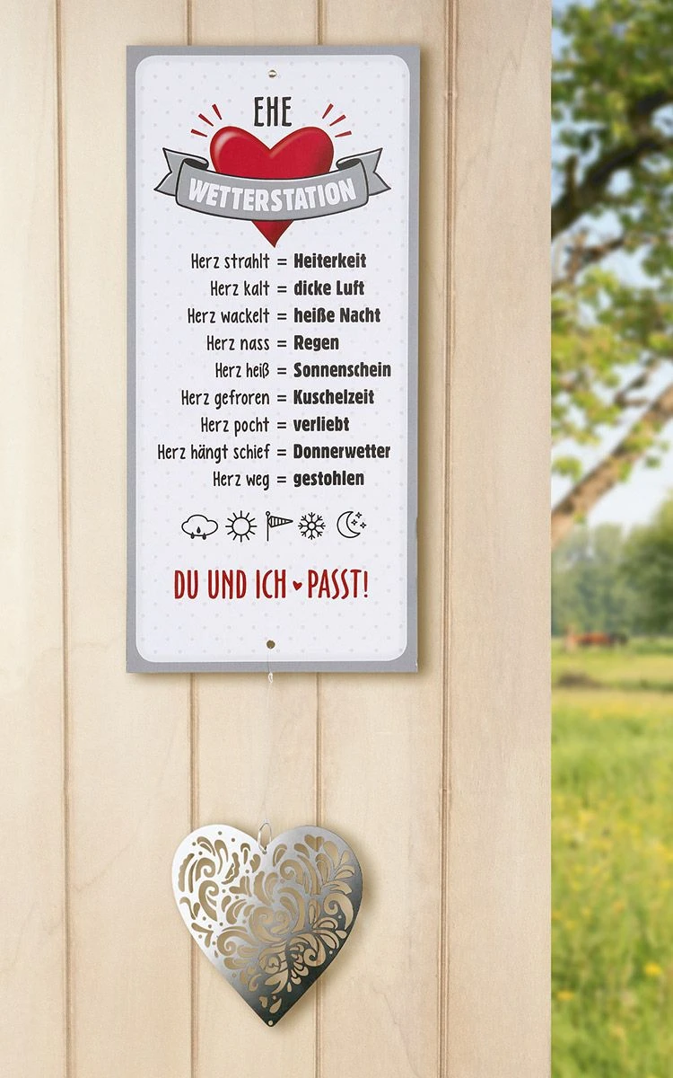 Gilde Alu Schild Wetterstation „Ehe“ 30x14cm Inkl. Metallherz